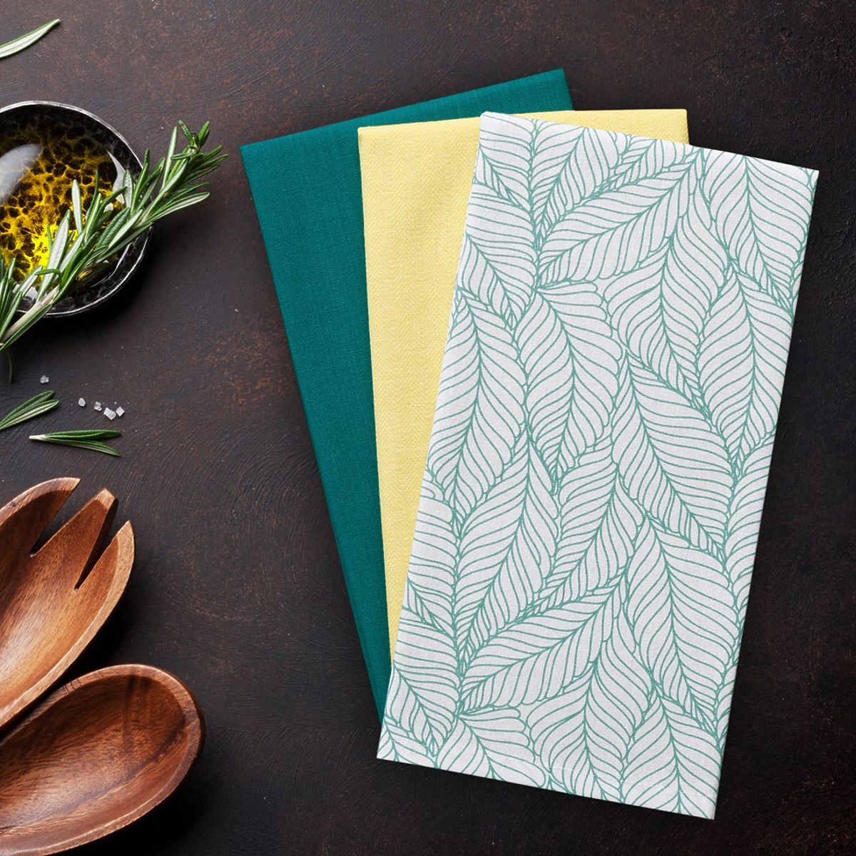 Torchon de cuisine moderne en coton, turquoise et jaune, 50x70 cm. .. plus