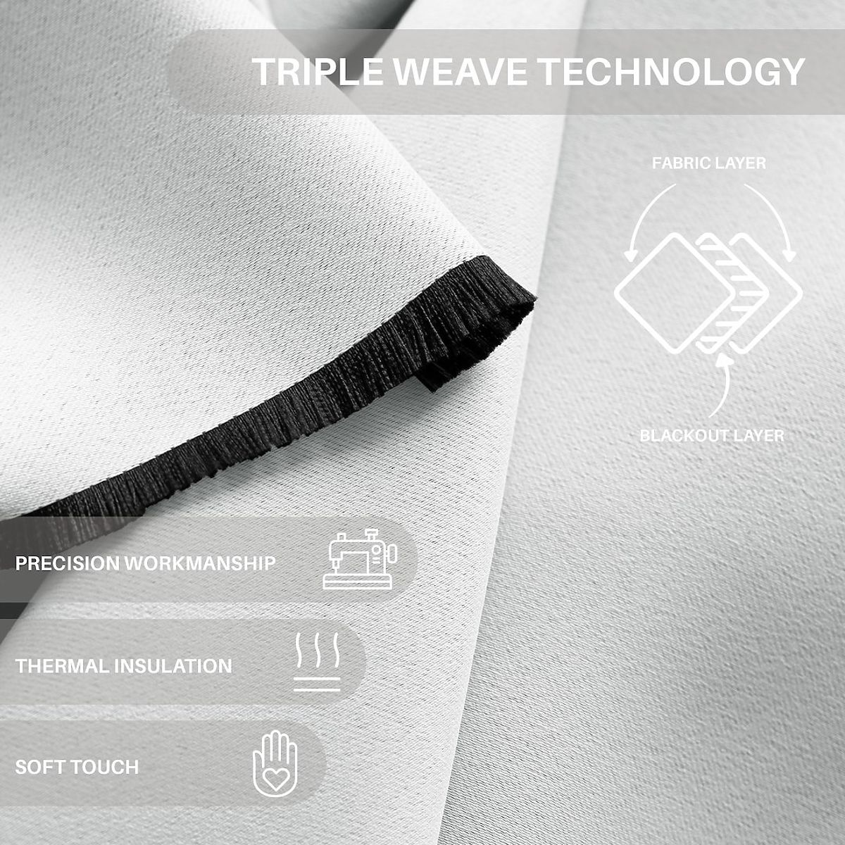 Rideau blanc en matériau blackout avec œillets argentés. .. plus