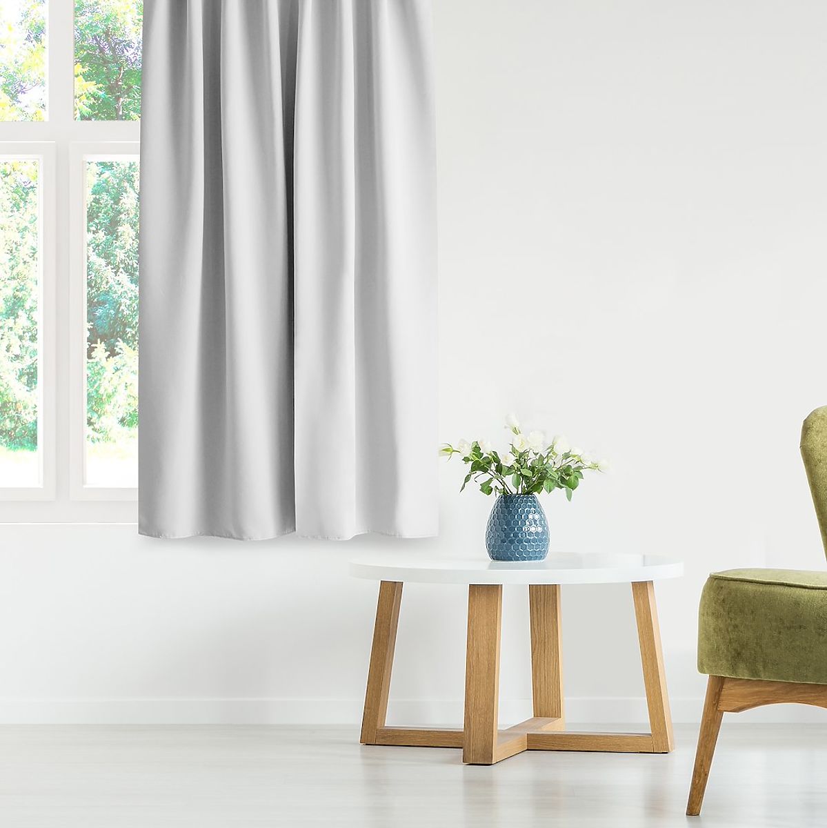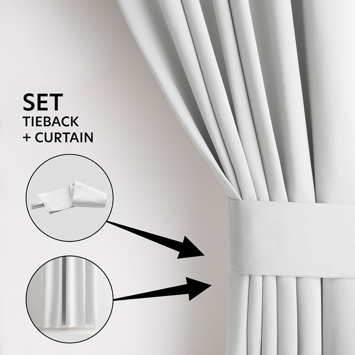 Rideau blanc occultant avec œillets argentés et embrasse. .. plus