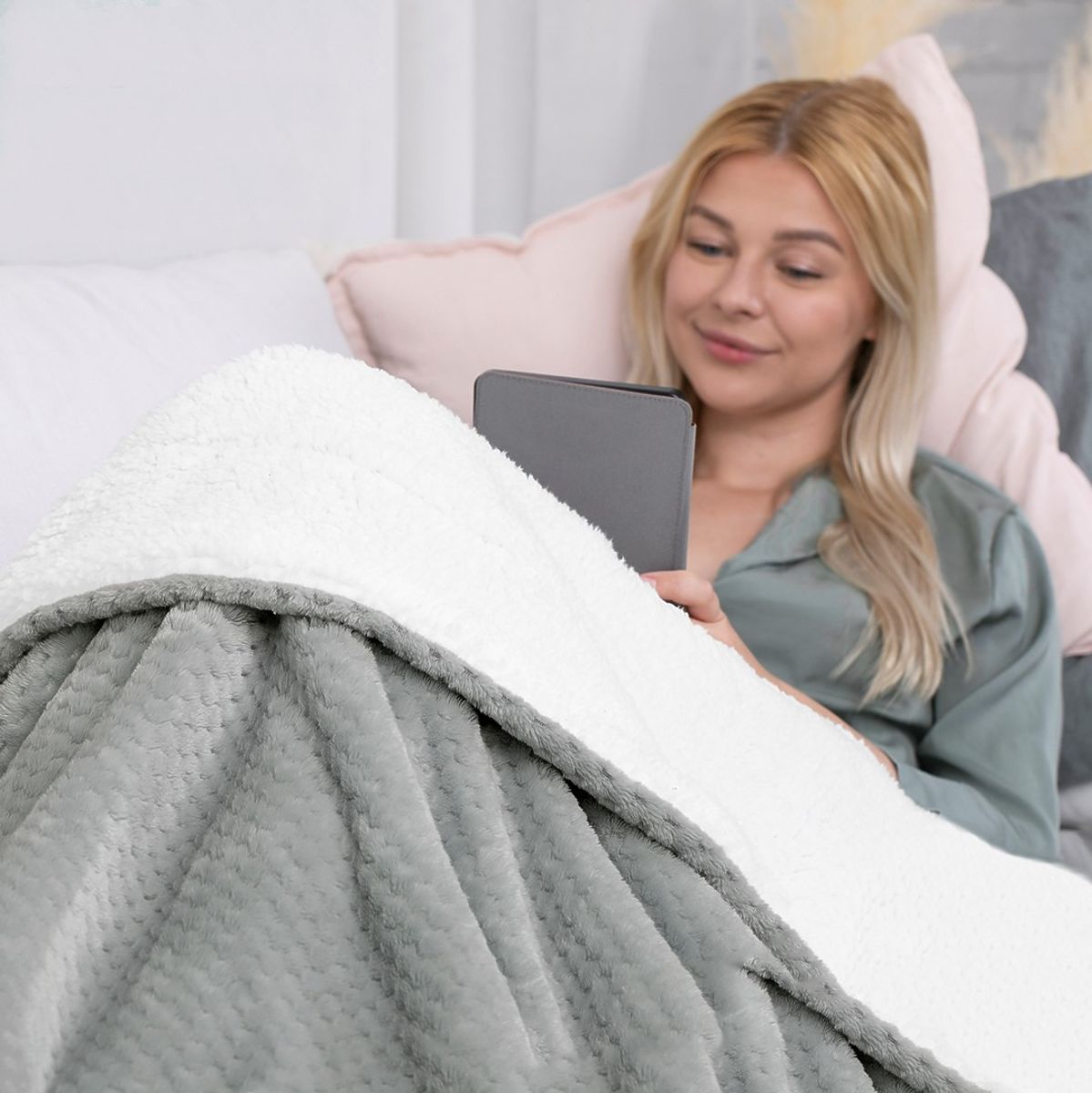 Couvre-lit gris SHLEEPY avec motif jacquard pour un intérieur élégant. .. plus