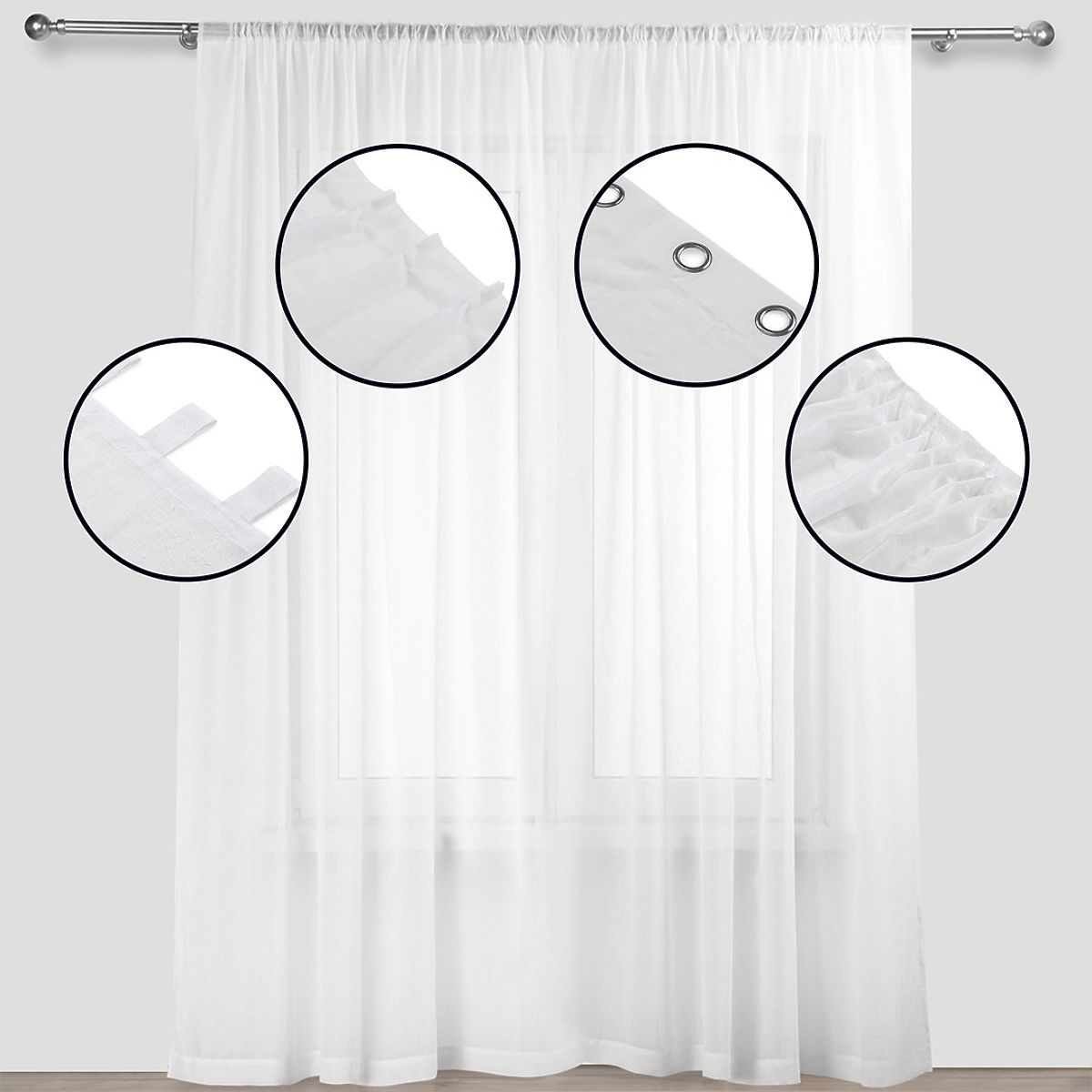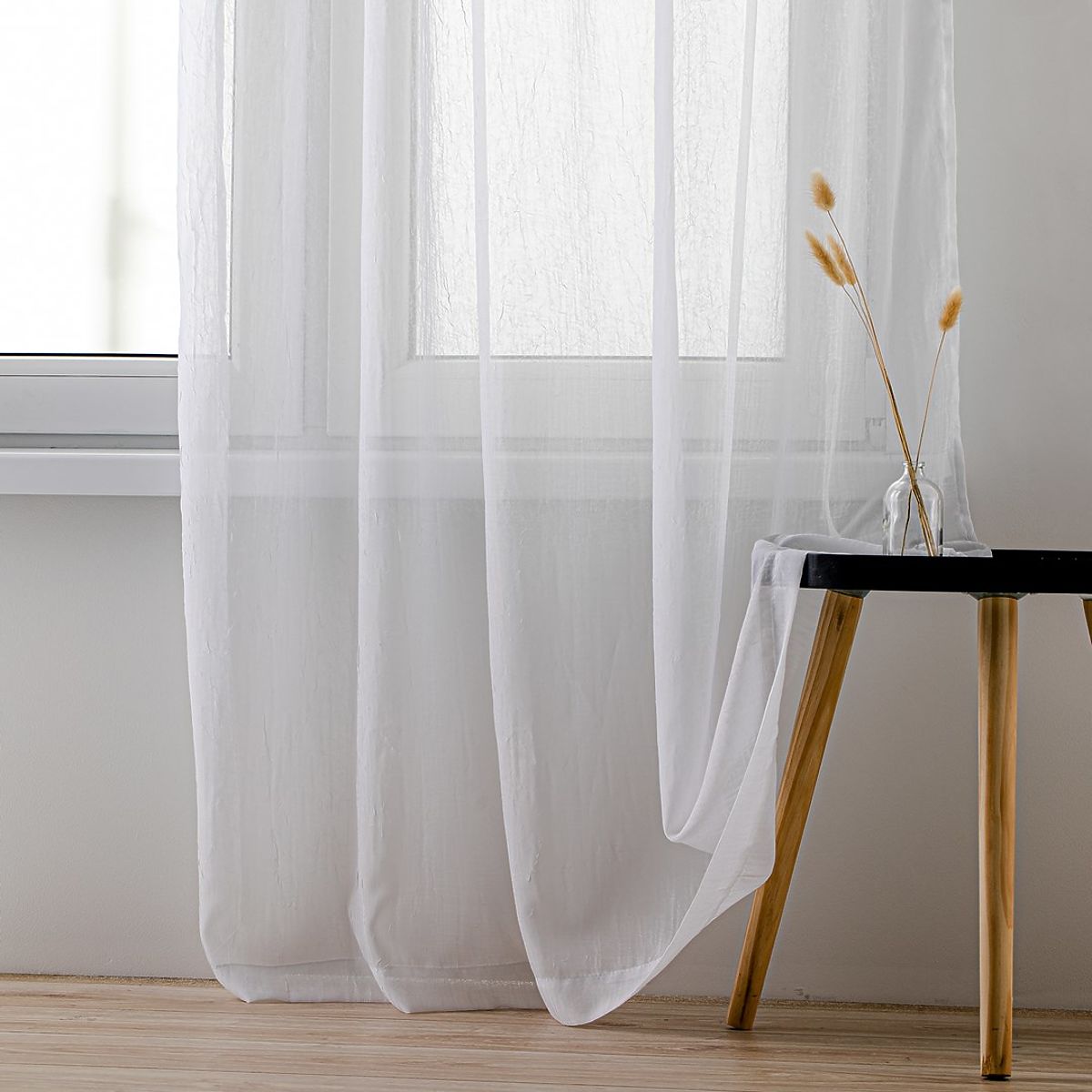 Rideau en voile froissé blanc avec flex 5,5 cm et double pli, dimensions 140x270 cm. .. plus
