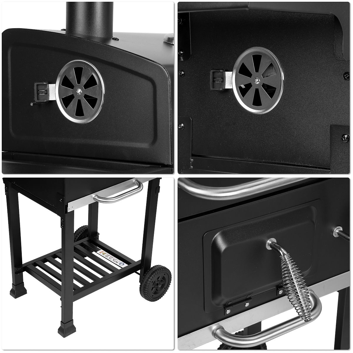 2 étagères latérales + étagère inférieure pour charbon/accessoires