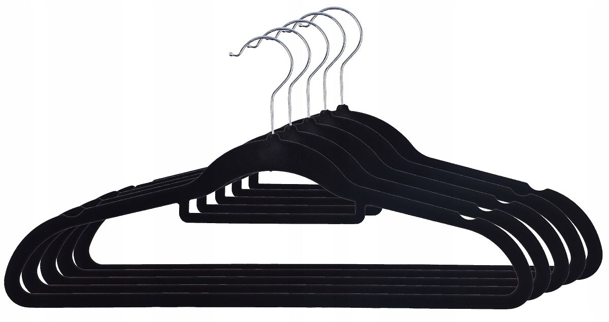 Ensemble de cintres en velours. La surface floquée les rend très pratiques car elle empêche les vêtements de glisser. Les cintres Maxi sont bien formés, ce qui aide à prévenir les plis sur les vêtements. Le crochet en métal résiste à des années d'utilisation.